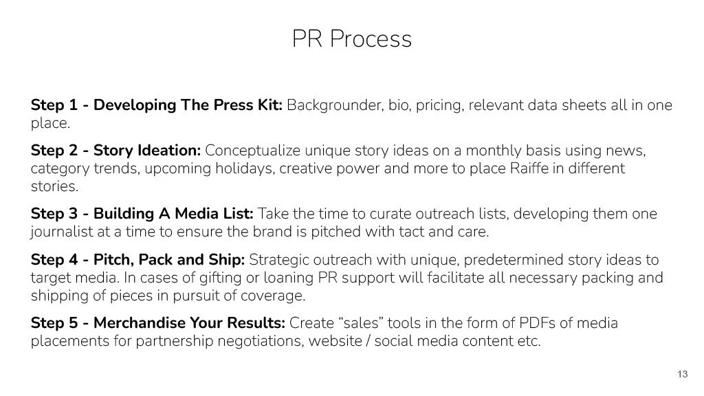 PR & Digital Marketing proposal for glass artist Josh Raiffe who was seeking first time representation.