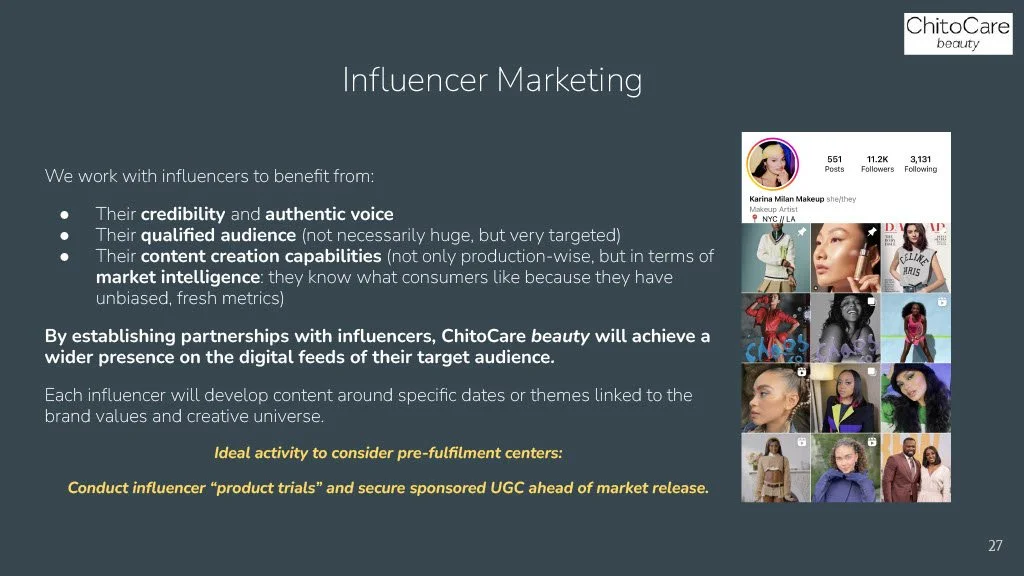 Integrated Communications proposal for ChitoCare beauty pre-fulfillment in the U.S. market.